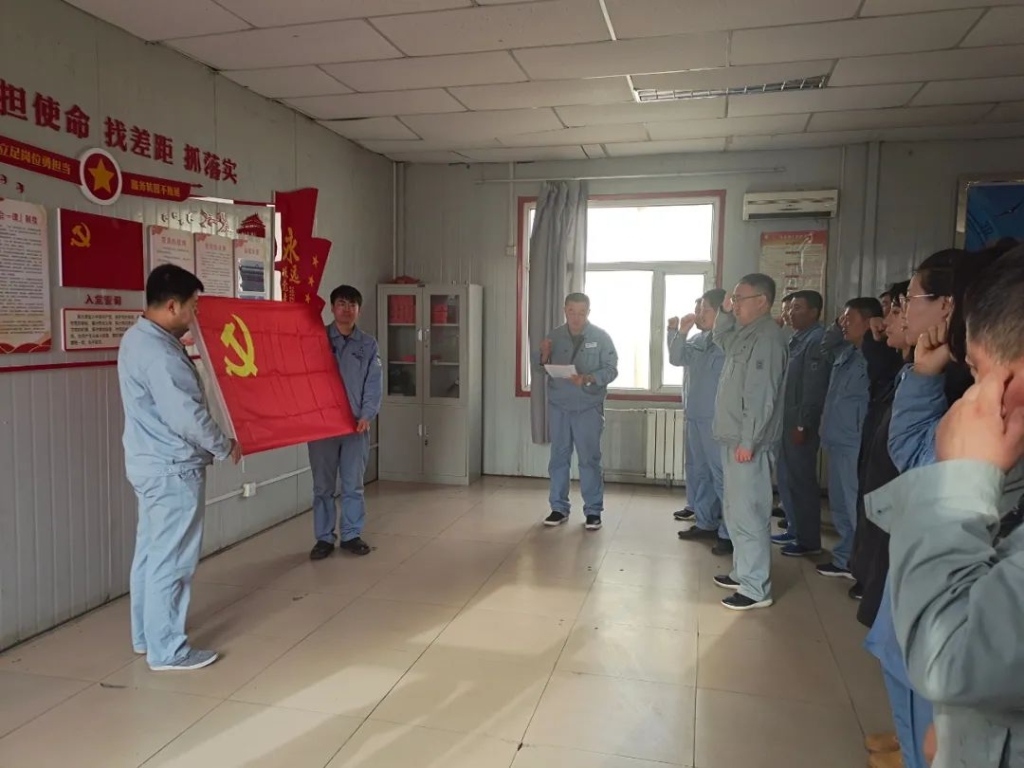 煤制油公司维保中心党支部组织全体党员、积极分子、班组长,在厂区一线组织开展主题为“学党史,缅先烈,守初心,担使命”的党史学习教育活动,通过支部书记讲党课、党员集体宣誓等形式,引导全体党员职工铭记入党初心、践行使命担当。